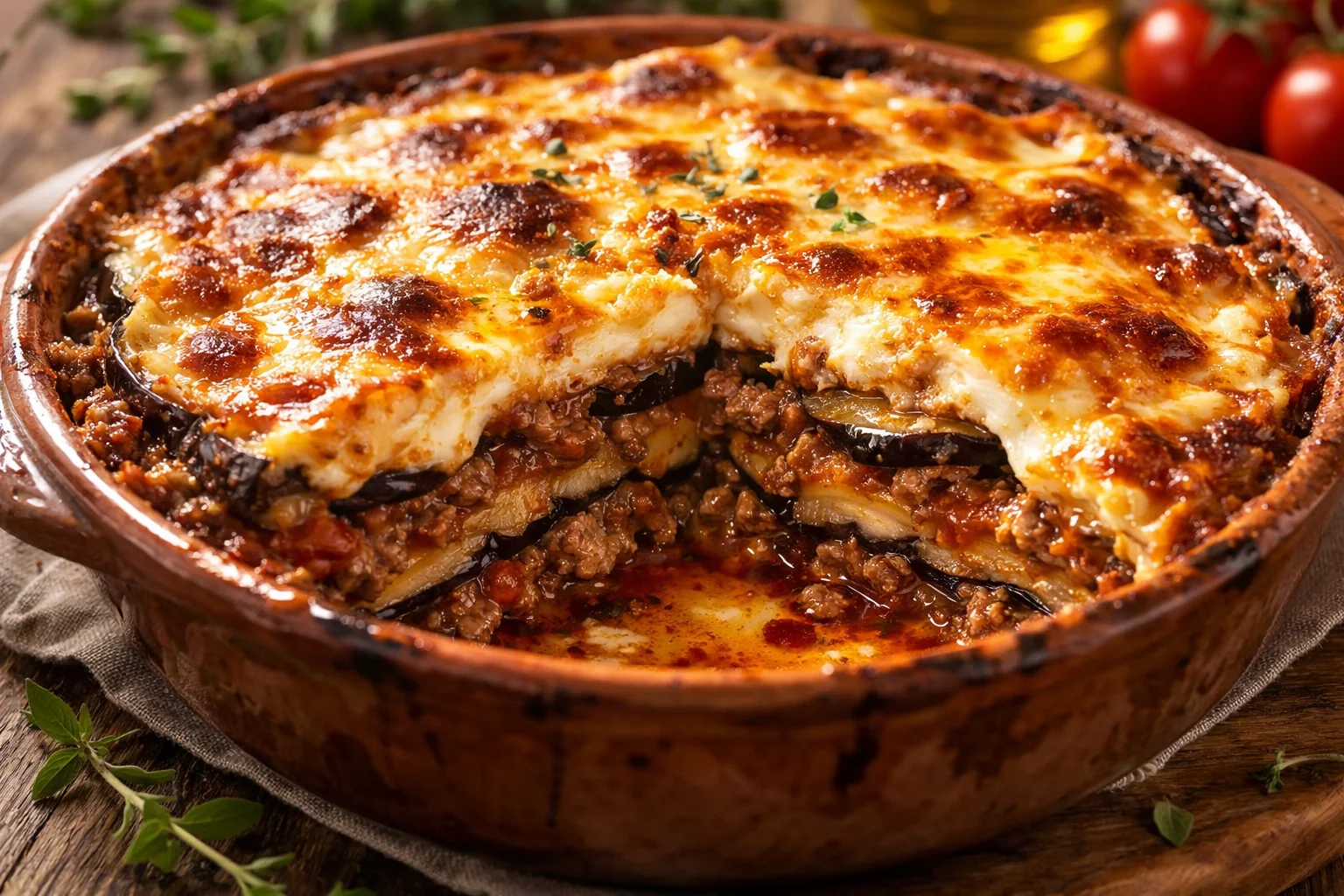 Classic Moussaka with Eggplant, Minced Meat, and Béchamel